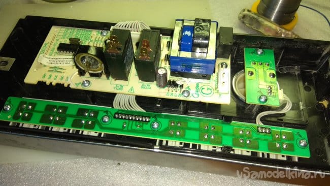 Вернемся к ремонту. По словам владельца, табло печки не светится. Плата управления питается от обычного трансформатора.