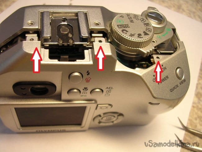 Придется разбирать дальше. Откручиваю винтики крепления видоискателя.