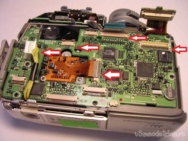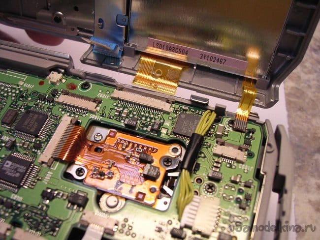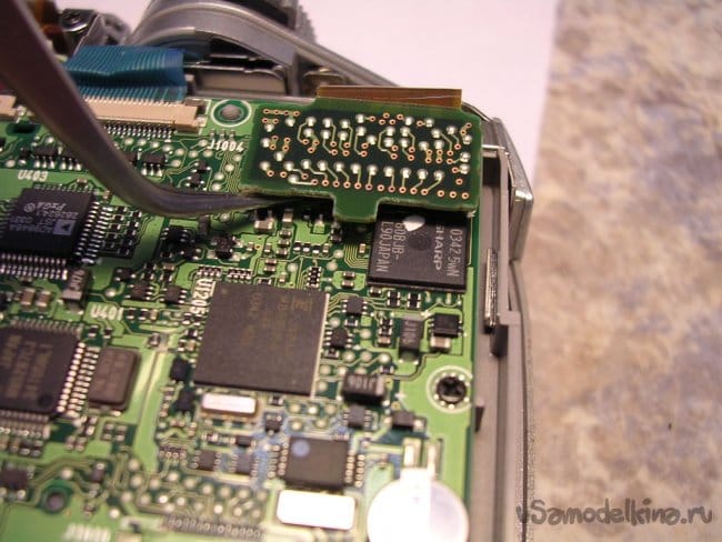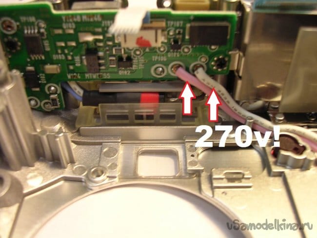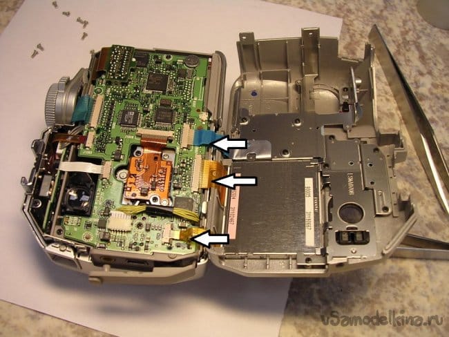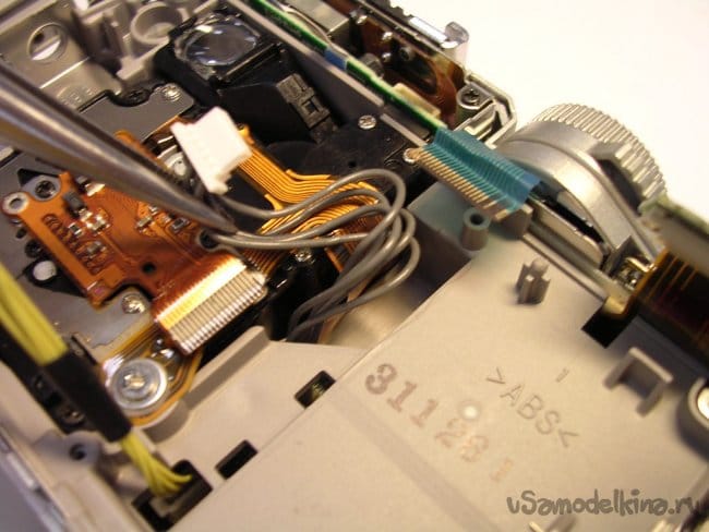 Еще парочка шлейфов и можно извлекать объектив и блок вспышки. Заодно разряжаю конденсатор.