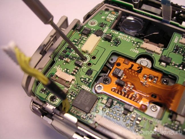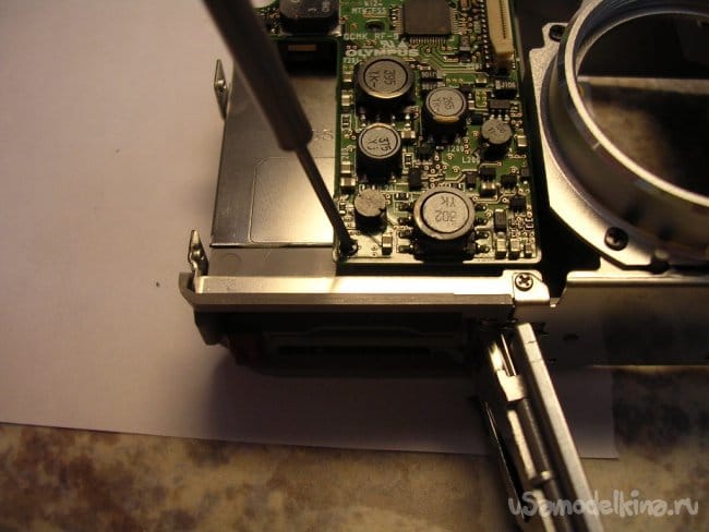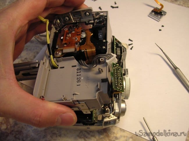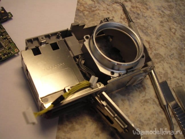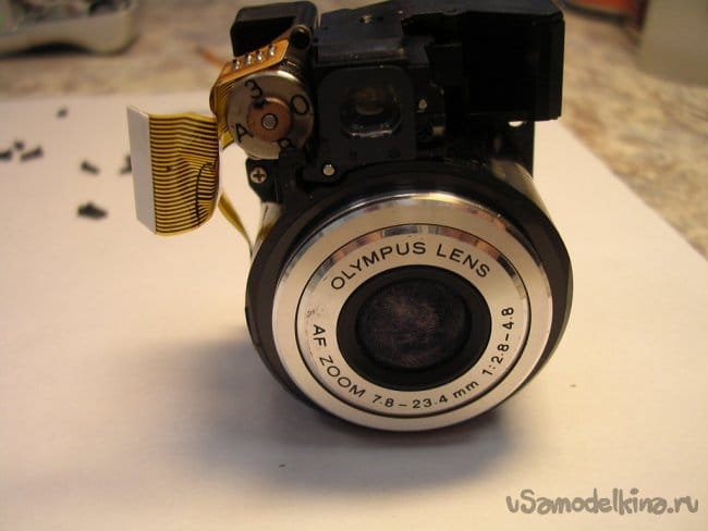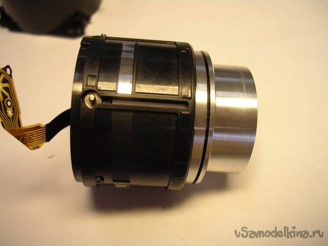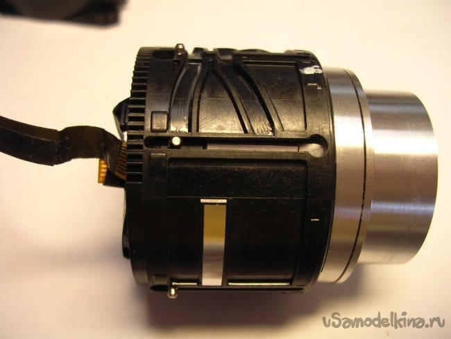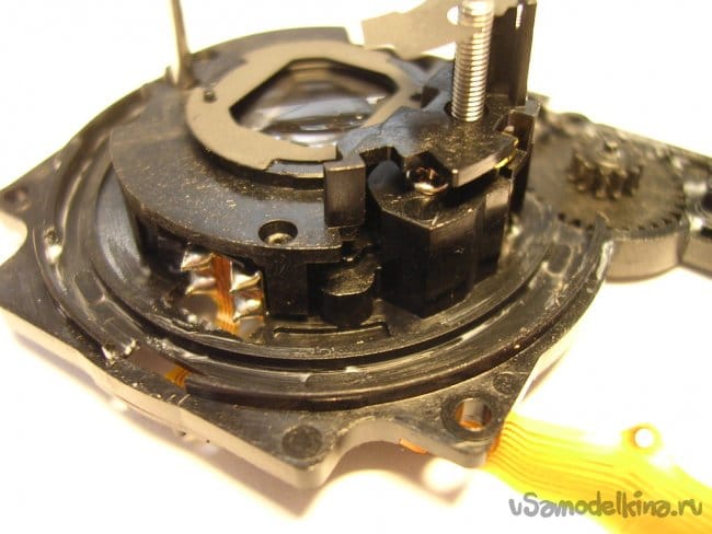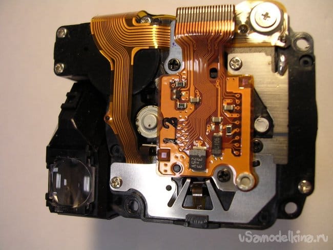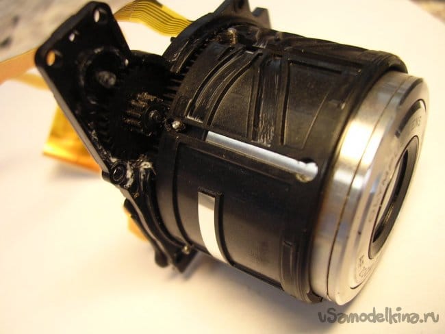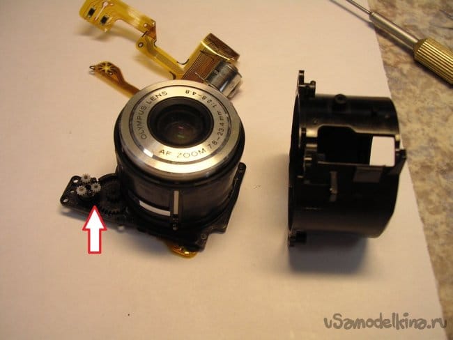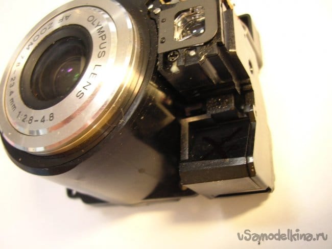 Рассоединяю шлейфы управления и вскрываю планетарный(!), редуктор выдвижения объектива. Этот узел тоже перекочевал и аналогового аппарата олимпус 100. Досада, редуктор цел. А как хотелось отделаться малой кровью, переставил блок и ремонт окончен.