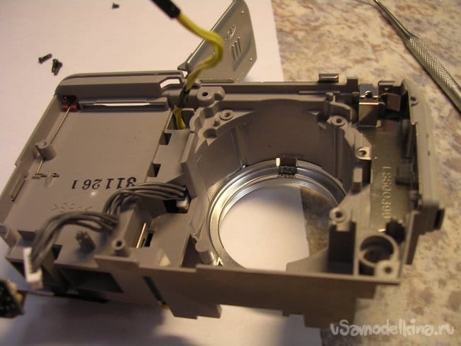 Снимаю фронтальную плату. Все, корпус весь выпотрошен, объектив снят.