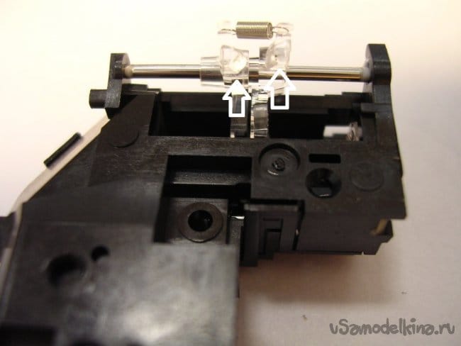 Опускаю баррели вниз и снимаю второй. Осторожно нужно обращаться со шлейфами управления.
