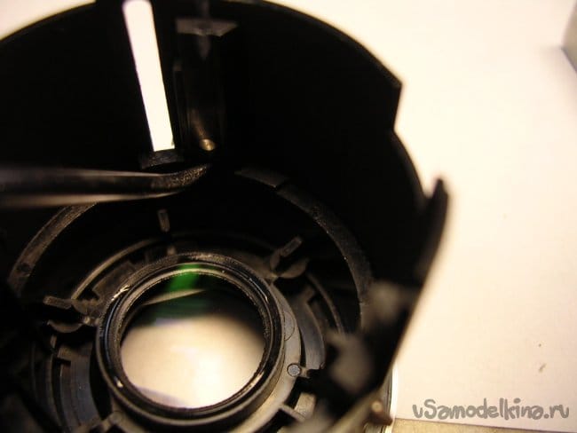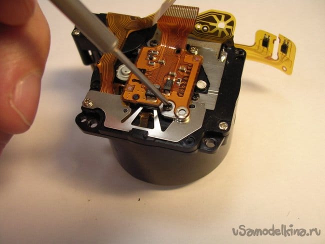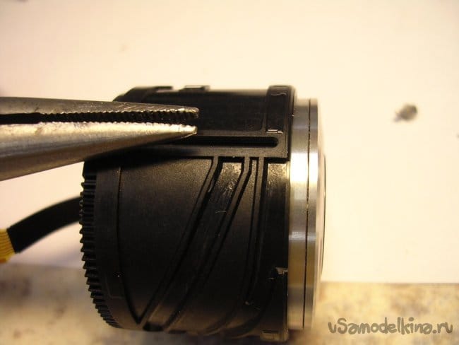 Устанавливаю элементы объектива в нулевое положение. Это нужно для извлечения металлических пинов. В этом случае приходится применять тонкогубцы.