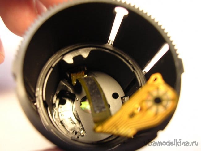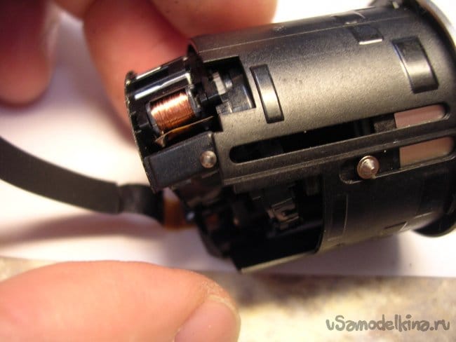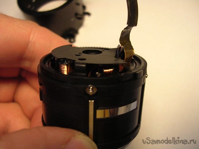 Осматриваю объектив со всех сторон, повреждений не вижу. Подаю питание на мотор, не движется. Может, повезло, накрылись шестеренки редуктора и не нужно разбирать объектив.