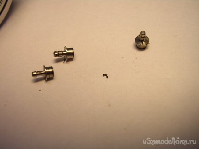 Ага, последний баррель не извлекается. Очень осторожно, как минер, проворачивая и раскачивая конструкцию, все-таки разлепил детальки. Еще одна неисправность, один из пинов выпал и застрял между стенками цилиндров. Извлекаю его пинцетом. Теперь все на месте. Вставляю его в отверстие и собираю обратно первые два барреля.