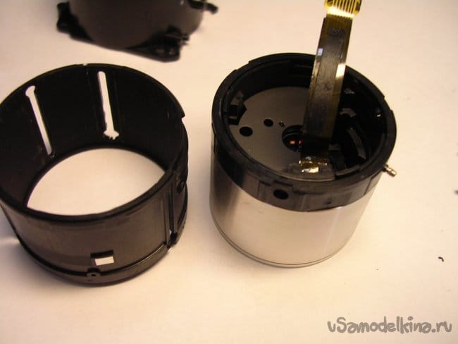 Остались только внутренние баррели объектива. Пробую осторожно провернуть руками, не двигается ничего. Нужно разбирать дальше.