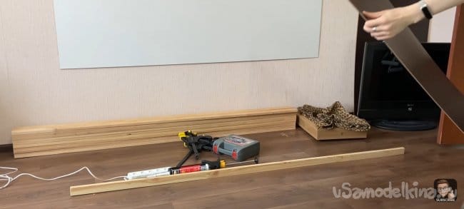 Для начала определяем длину нашей будущей панели! Это нужно для того, чтобы наш столик (Тема для следующей статьи) был единым целым с панелью. Если же вы хотите просто оформить стену, то берите материал на всю длину вашей стены.