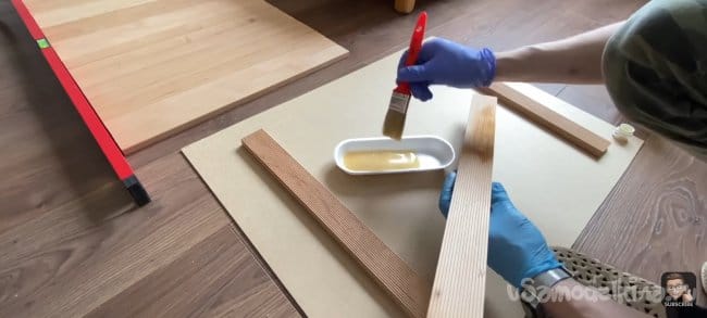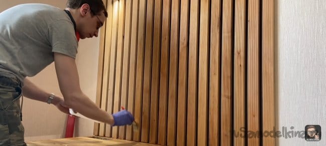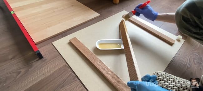Для придания планкам глянца я покрыл их маслом для дерева. Оно защищает дерево и подчеркивает его красоту не изменяя естественного цвета.