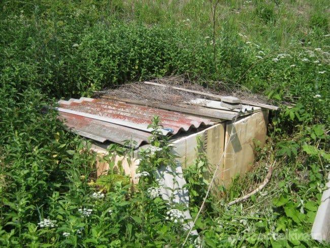 Первым делом расчистил «операционное поле» - вырезал вокруг заросли мяты и крапивы, очистил от нанесенного мусора старую часть крышки, разобрал (Фото 7).