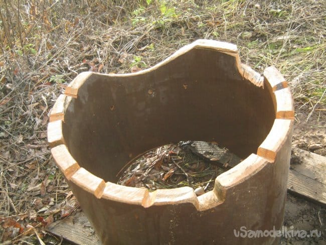 Фото 14. Ответные надрезы на торце зарытого стакана.
