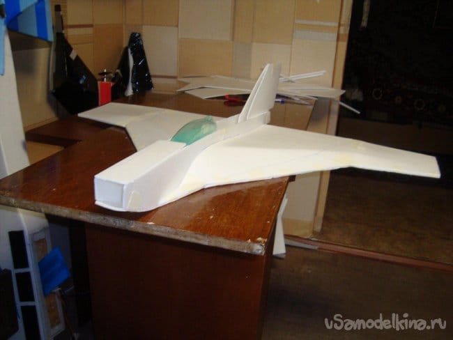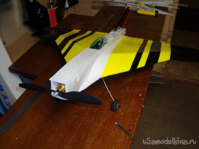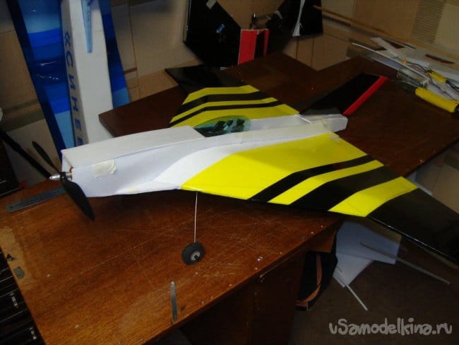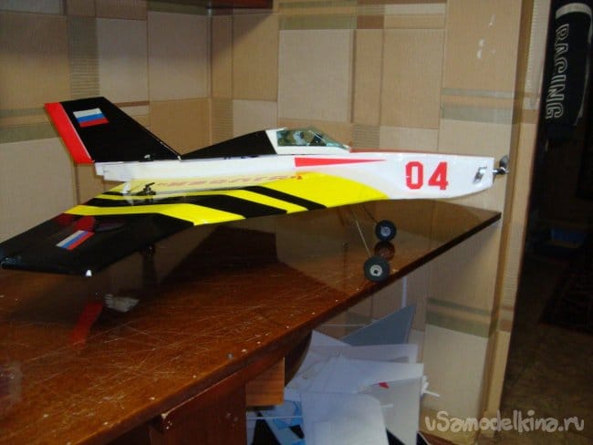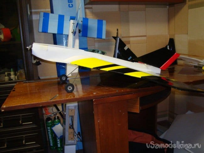 Установил мотор, вклеил киль, навесил элевоны, подсоединил тяги.