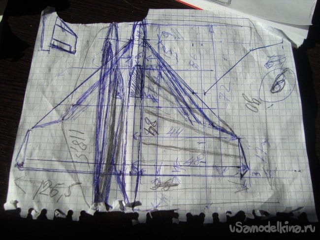 Сделал небольшой чертёжик, скорее рисунок, выбрал масштаб модели, проставил размеры.