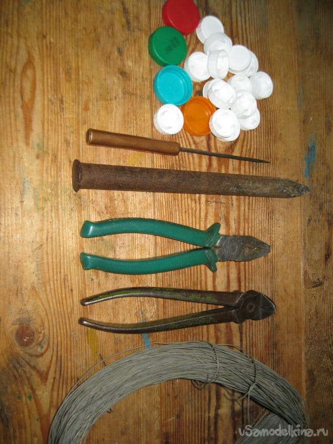Однако из пластиковых крышек и проволоки, можно сделать много разных самоделок. Правда стоит отметить, что подобные самоделки можно сделать и из других материалов, но у меня как раз накопилось довольно много пластиковых крышек, поэтому мне удобнее и проще делать самоделки именно из них.