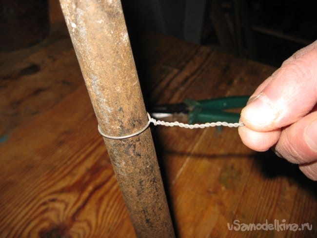 А затем, скручиваем концы проволоки пассатижами, делая несколько оборотов.