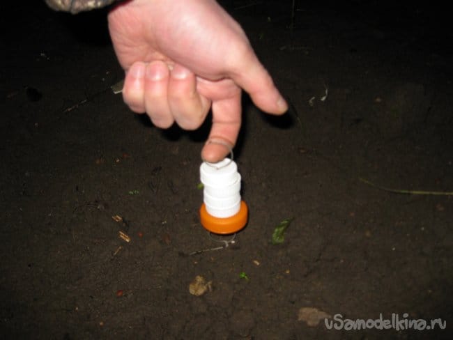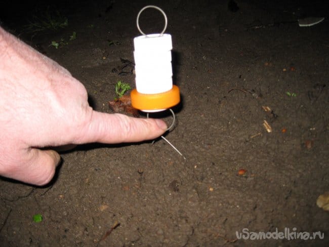 Чтобы воткнуть метку в землю, берем ее за верхнее кольцо и слегка втыкаем в нужное место.