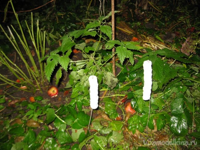 Поэтому еще несколько лет назад, я начал делать метки в виде столбиков из нержавеющей проволоки и пластиковых крышек от молочных пакетов, которые удовлетворяли упомянутым выше критериям. Технология их изготовления практически такая же, как у упомянутых выше парковочных столбиков для автомобиля.