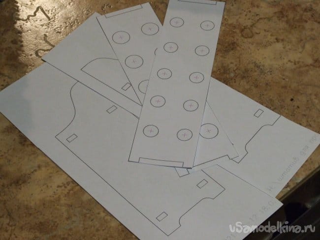 Сняв мерки с наших пробирок и задействовав толику воображения и принципы эргономики мы определились с размерами и конструкцией штатива. Все детали были вычерчены в КАДе и где нужно снабжены элементами-соединителями. Контуры деталей сгруппировал и распечатал в натуральном виде – 1:1. На А4 влезли как миленькие (Фото 1).
