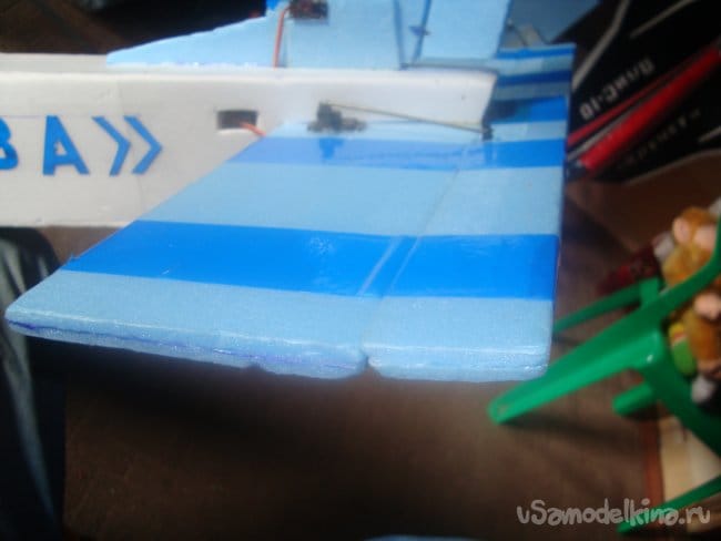 Из двух слоёв подложки вырезал и склеил стабилизатор, киль РВ и РН . Навешивал так же на бумажный, малярный скотч.