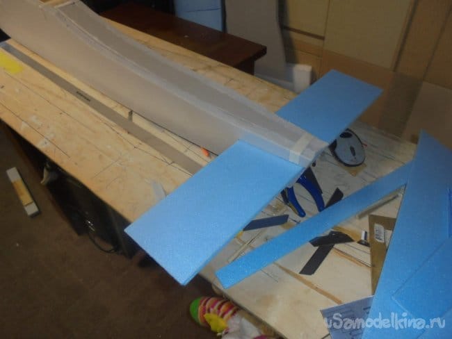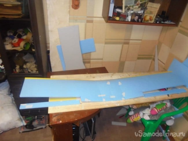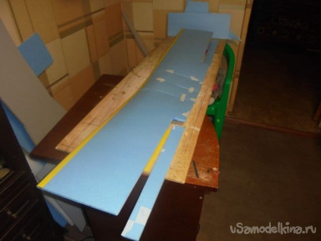Это для крыльев. А для фюзеляжа я взял листовой утеплитель «Пеноплекс» , толщиной 20 мм.