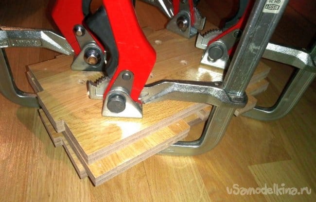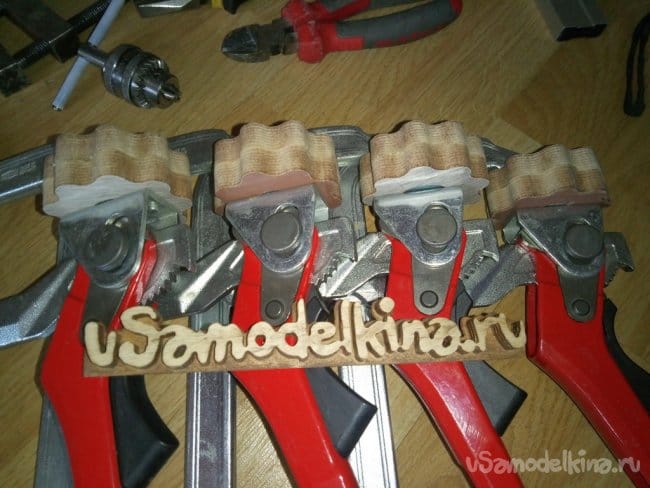 Дальше склеил половинки и сдавил струбцинами.