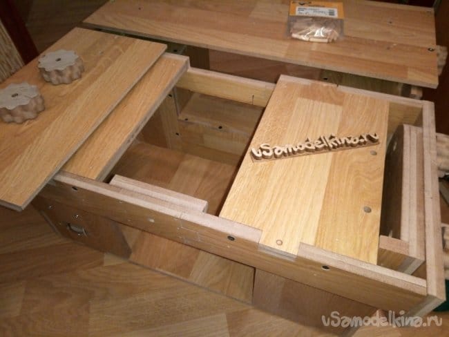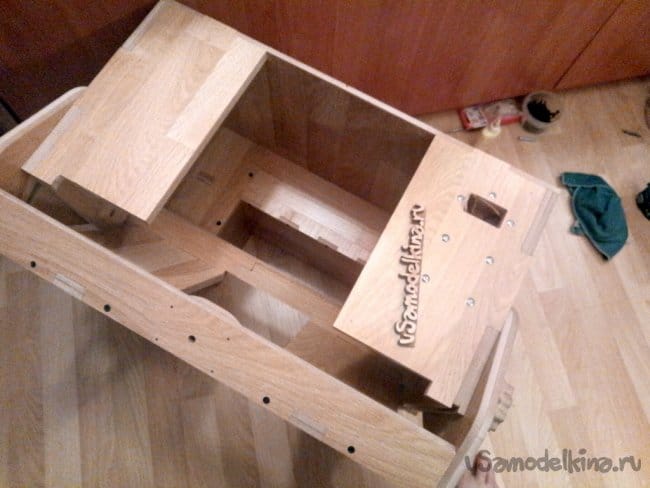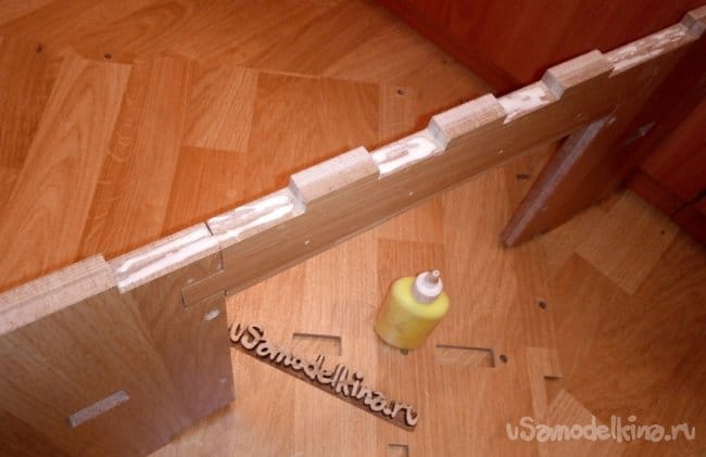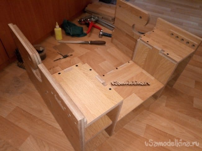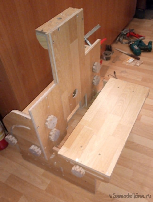 После состыковки деталей, соединял их между собой саморезами и конфирматами.