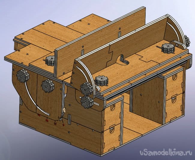В принципе все готово и можно приступать к вырезанию деталей, склейке половинок и окончательной сборке стола. Частично процесс сборки будет показан на фотографиях ниже.