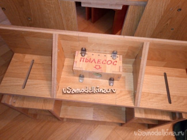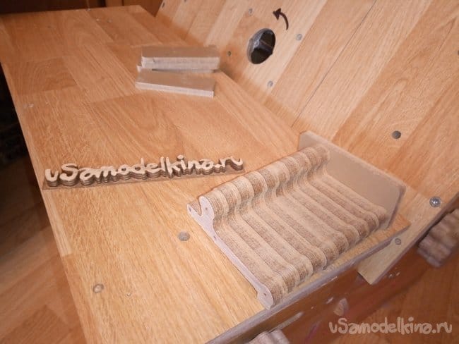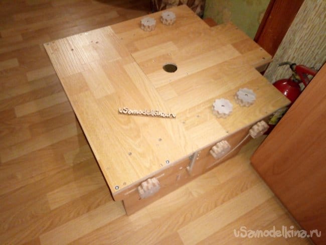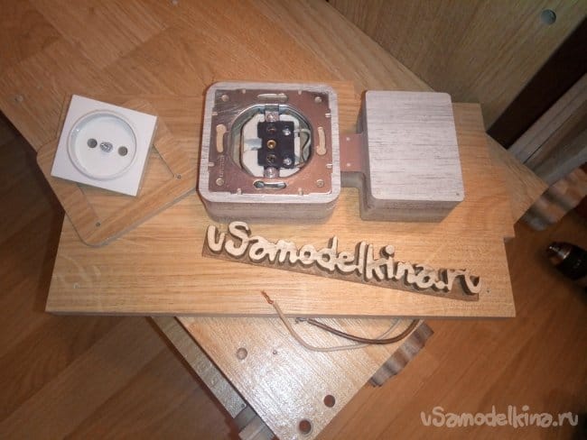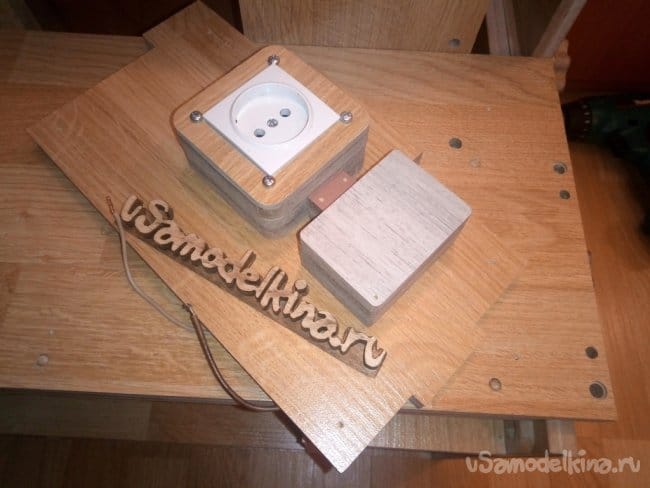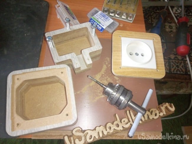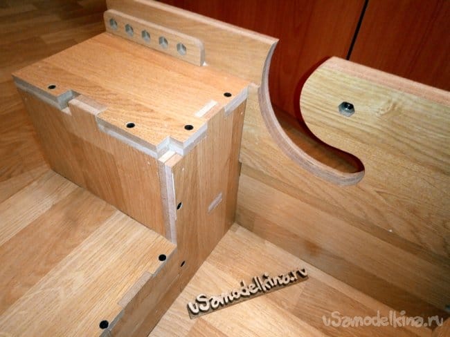Еще установил изнутри розетку для подключения фрезера и сделал защитный кожух для разъема. Все это вырезал из обрезков ламината.