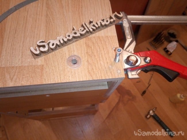 На нижней фотографии показано, что перед установкой крепежа, я обязательно стягивал деталь, в которую будет ввинчен винт или саморез. Во избежание расслоения детали.