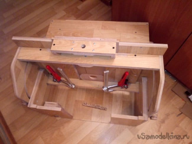 Собираю упор с вырезом под фрезу. Позже этот вырез будет закрыт кожухом с отверстием для пылесоса.