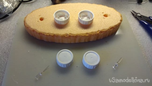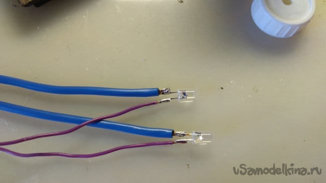 С помощью паяльника скруглил углы заготовок. В основании проплавил отверстия для светодиодов и проводов.
