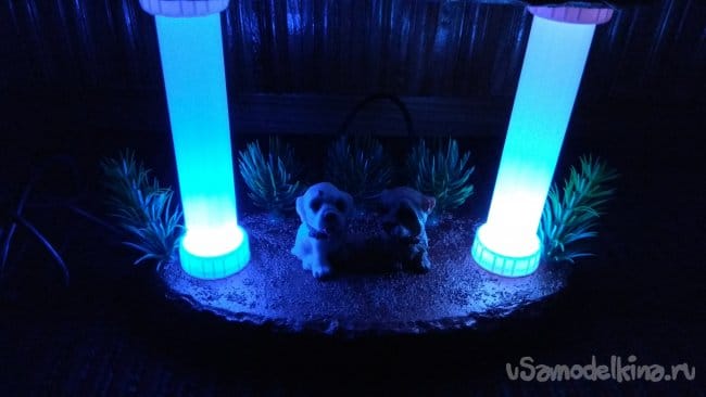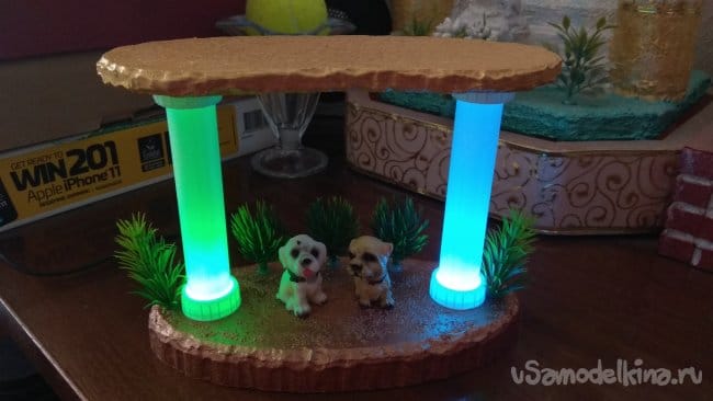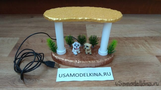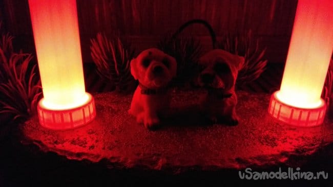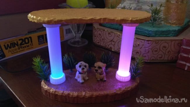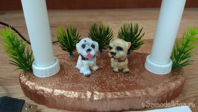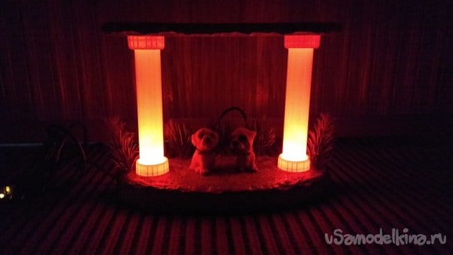 Второй вариант ночника-светильника с колоннами. На этот раз я использовал маленькие статуэтки собачек.
