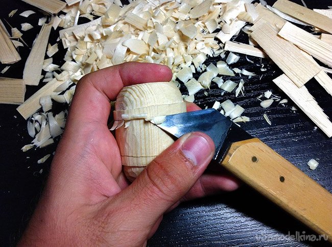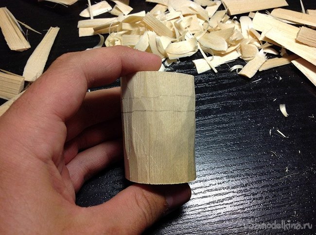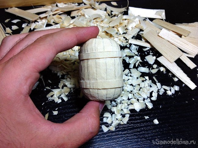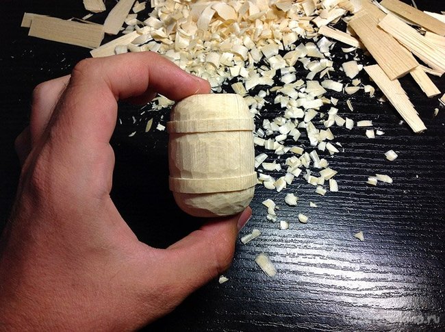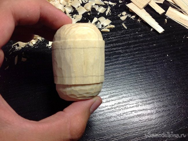 Теперь получились неглубокие бороздочки и наша заготовка стала похожей на бочку