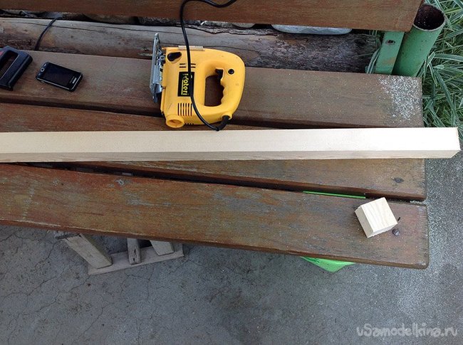 На бруске отмеряем отрезок длиной в 7 см. Отрезаем. Это и есть наша заготовка.