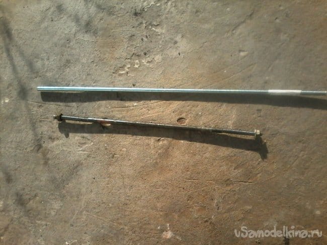 2200* 50 *25мм – 1шт, заготовка из фанеры размером 300*300*20мм -1шт, уголки 50*50мм -2шт, стальные полоски 50*50*2мм -2шт, стальные шпильки с резьбой М 10 длинной 500мм – 2шт,