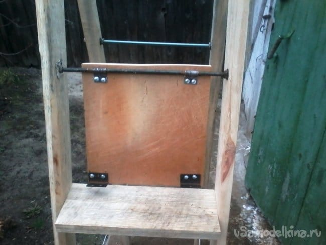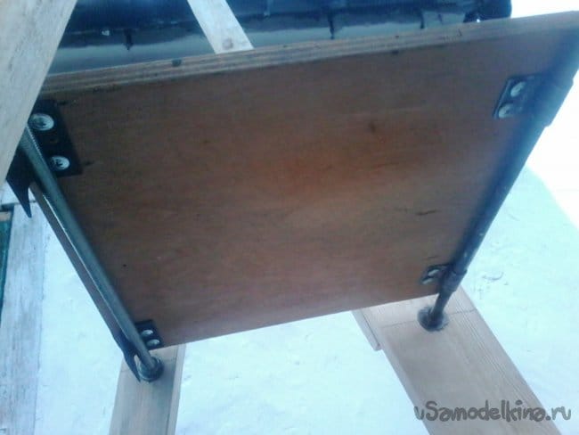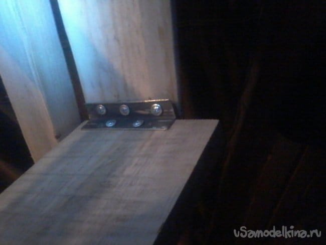 Верхнюю площадку делаем из фанеры 300*300мм, закрепив снизу маленькими уголками и полосками.