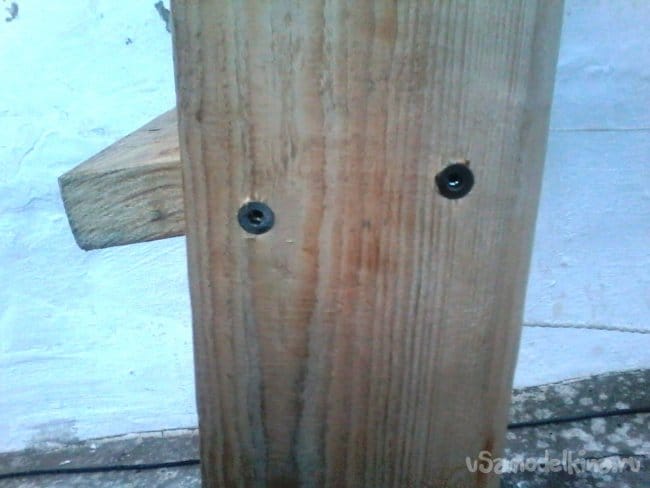 Сверху стремянки по бокам крепим бруски 950*50*25мм саморезами.