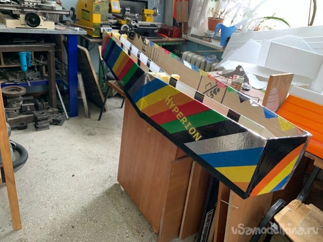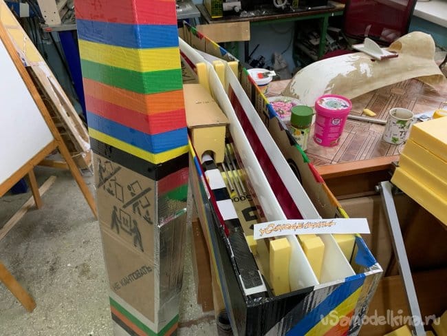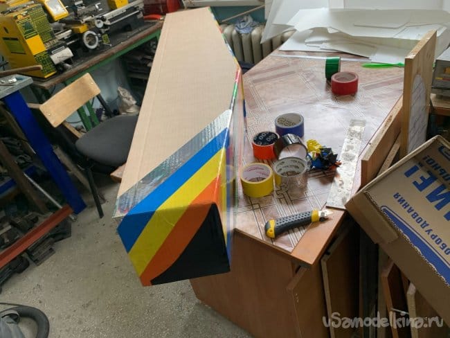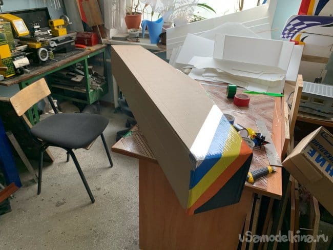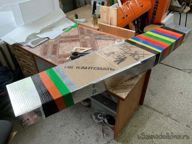 Пришло время обтяжки всего этого дела скотчем. Тут можно очень сильно креативить, чтобы коробка была индивидуальна к каждому самолёту.