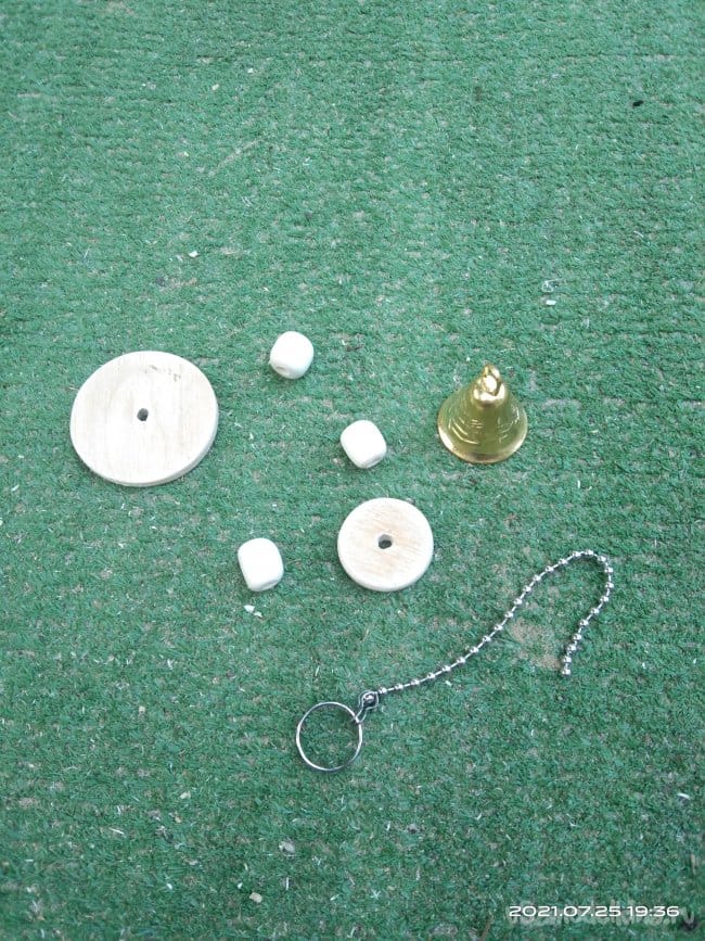 Это все, так сказать, спортивные снаряды. А вот чтобы питомец смог поиграть, для него была установлена подвесная игрушка с колокольчиком. Подвешена она на цепочку, которую используют для ванн.