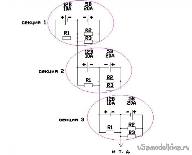 Не совсем понял заморочек с ячейками + 5 В. Я бы взял четыре БП, и получил 48 В используя только + 12 В. Или я чего-то не понял? dontknow