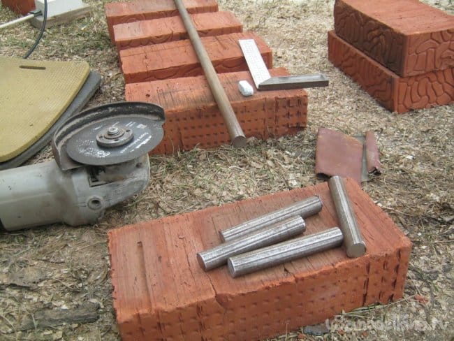 Итак. Заготовкой выбрал стальной пруток из стандартного магазинного проката. Наждачной бумагой снял легкую ржавчину, мелком разметил куски, нарезал заготовки (Фото 2), притупил на точиле острые края.