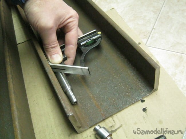 Фото 11. Разметка угла 45 ̊. Для удобства прямую заготовку вложил в отрезок швеллера.
