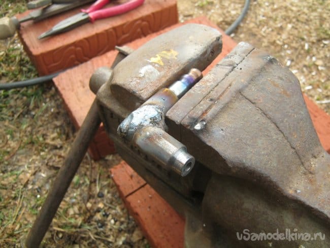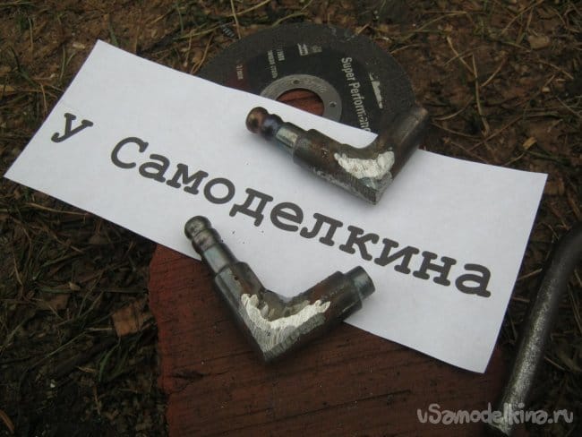 Фото 14. Сваренную деталь после полного остывания, таким же образом – зажав в тисках и постепенно ее переворачивая, зачистил толстым абразивным диском УШМ.