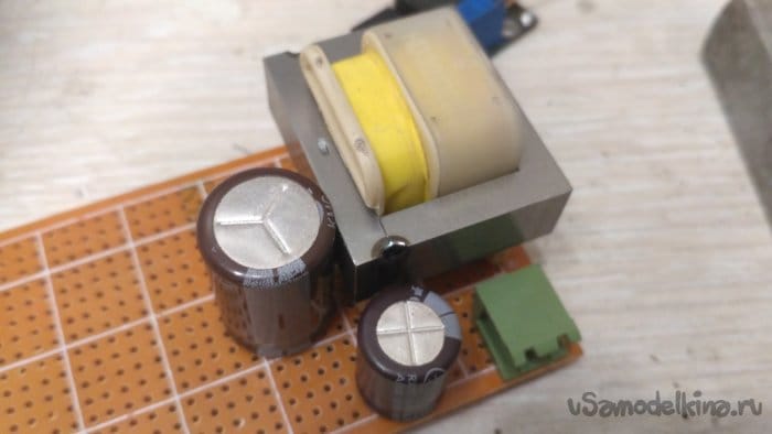 Таким же образом ставим конденсатор 35 В 2200 мкФ на оставшуюся обмотку (24 В).