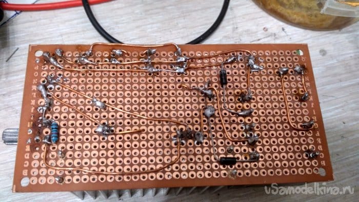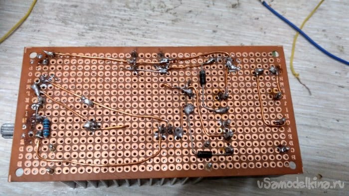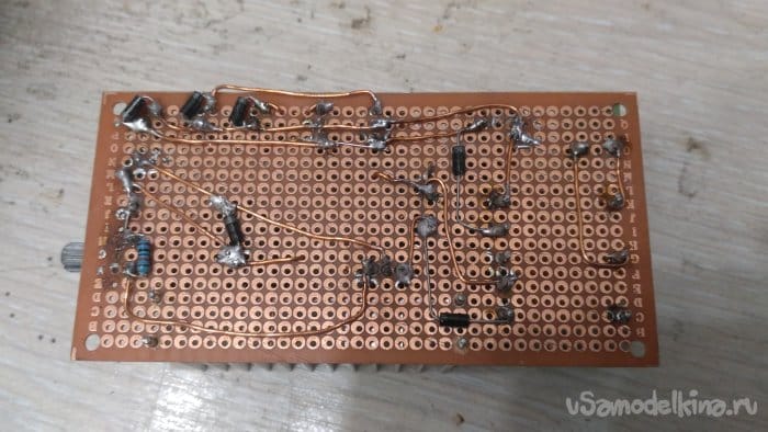 Сборку желательно начинать с входа и по мере сборки проверять работоспособность каждого из узлов. Потому что если проверять готовую схему, то она может не заработать из-за малейшей ошибки, и придётся всё снова разбирать и перепроверять. А ещё не используйте чистый свинец в качестве припоя, во-первых это весьма опасно для здоровья, во-вторых со свинцом плата может не заработать; когда я паял первую версию блока, то сделал фрезеровкой плату с дорожками, кое-как спаял свинцом. В результате столько накосячил, что схема не заработала, и пришлось перебираться на перфорированную плату, менять компоновку и перепаивать все детали.