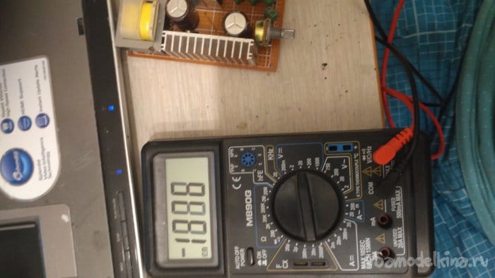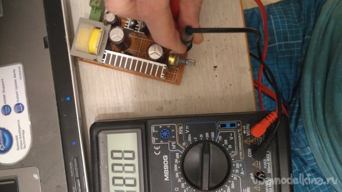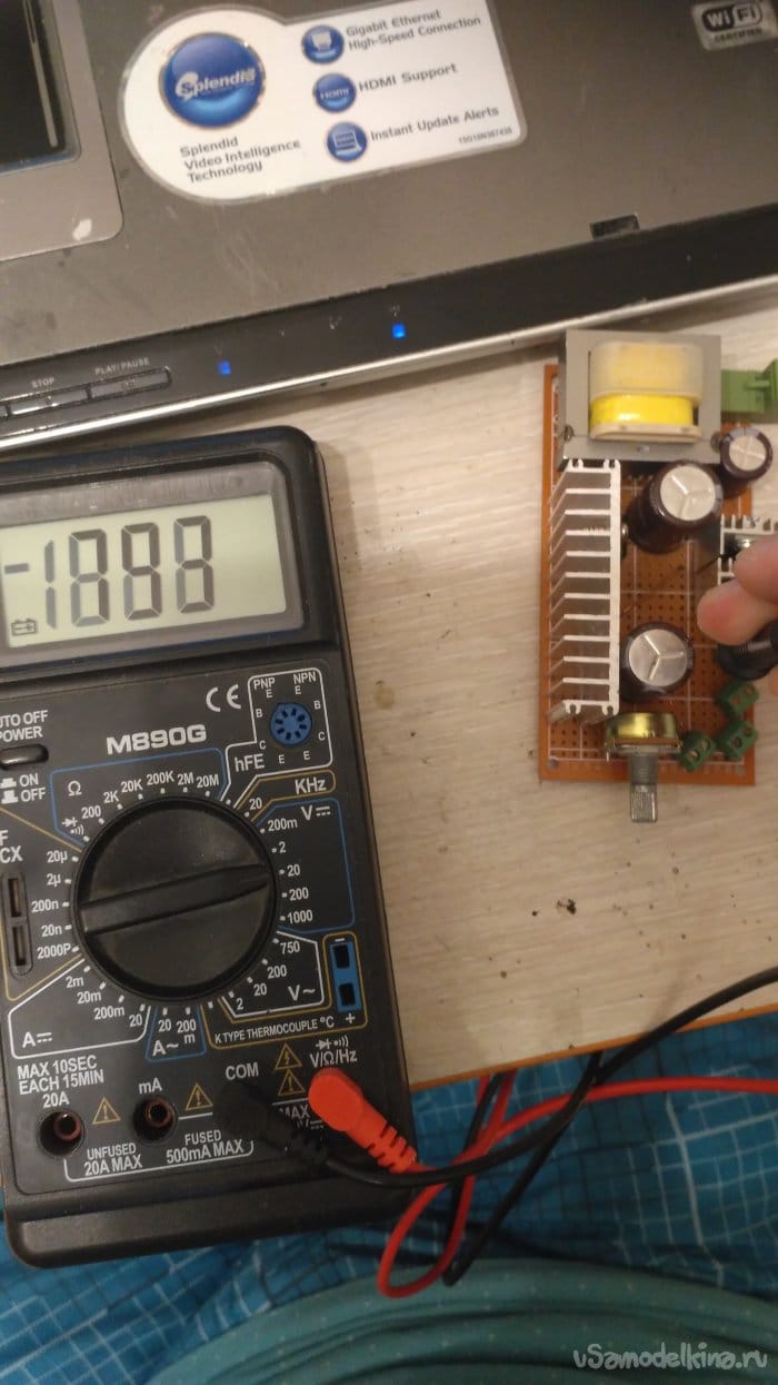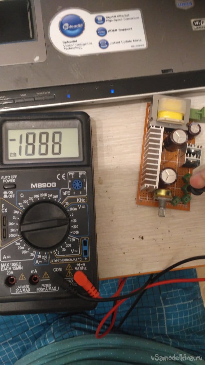 После окончания всей сборки визуально проверяем наличие ошибок и случайных соединений. Если вы их не обнаружили, то можно подключать к сети и наслаждаться проделанной работой. При замере напряжений на выходе должны получиться стабильные 5 и 8В, регулируемый выход, и примерно 12 В. Если всё так, то поздравляю, у вас получилось. На первом изображении один знак после запятой на показаниях, в остальных два знака. Мультиметр оказался предателем.