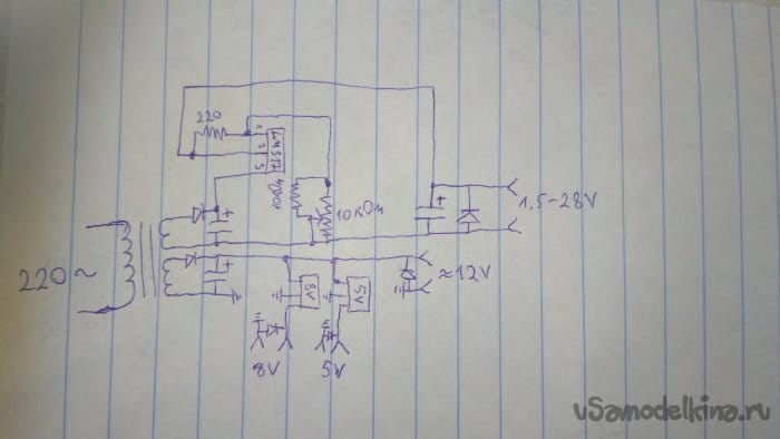 А теперь несколько слов о возможных доработках и улучшениях. LM317 можно заменить на более высокотоковый аналог, поставить стабилизатор на 12 В, установить на регулируемый выход цифровой вольтметр (продаются за смешную цену на всеми любимом алиэкспресс), поставить трансформатор повышенной мощности (потому что этот при замыкании выхода начинает понемногу, но ощутимо нагреваться). Ну и, конечно же, всё это дело можно упрятать в красивый корпус, но у меня его нет, поэтому пусть будет так как есть. На этой приятной ноте я заканчиваю своё повествование, всем до новых встреч.