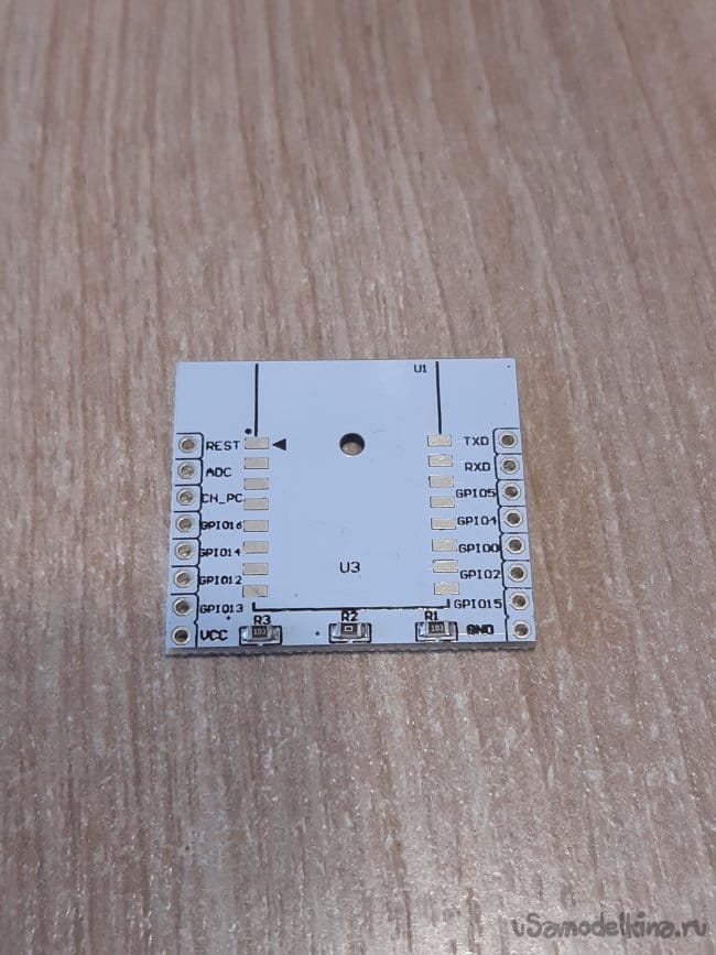 На ней уже есть необходимый минимум резисторов. Кроме того, на обратной стороне платы есть место для установки микросхемы линейного стабилизатора. (SOT 223). Но мне не удалось найти недорогой, подходящий у себя в городе. Дело в том, что по сравнению с распространёнными, подобными микросхемами серии LM1117 здесь контакты In и Out расположены наоборот.