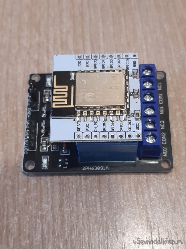 Сам модуль я приклеил двухсторонним скотчем прямо на реле.