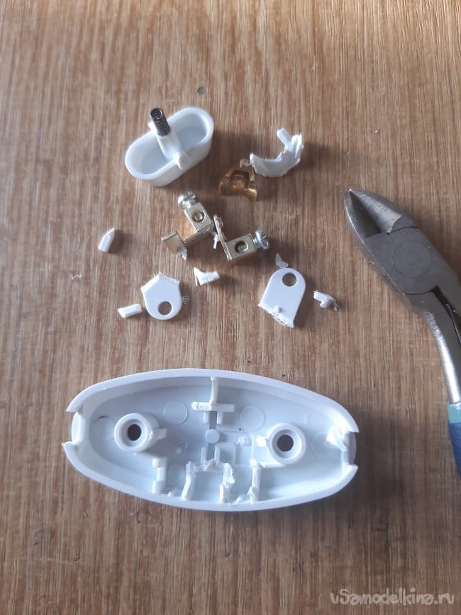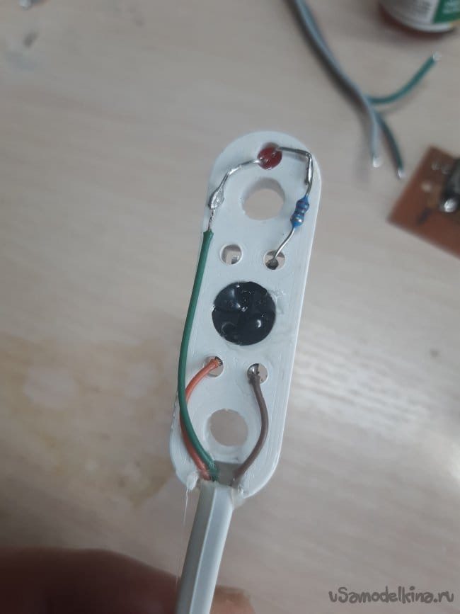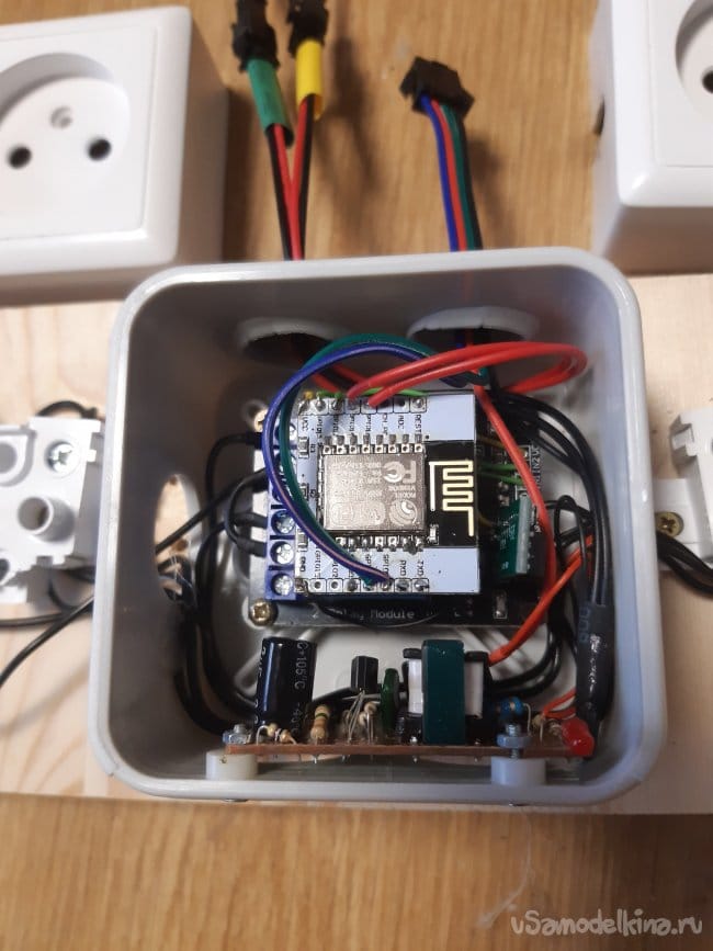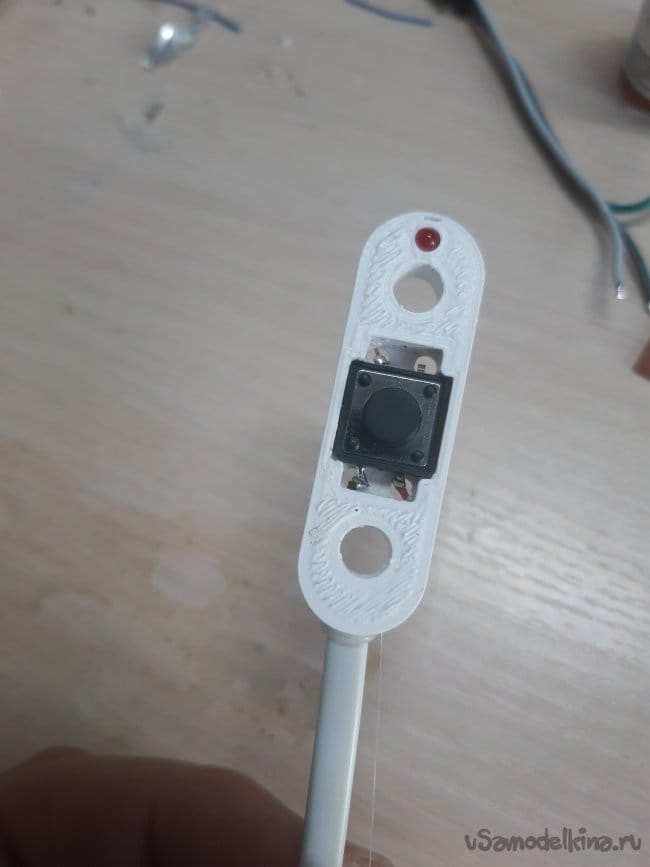 Кнопки управления просто висят на проводах. Для этого выключатель для бра был немного переделан.
