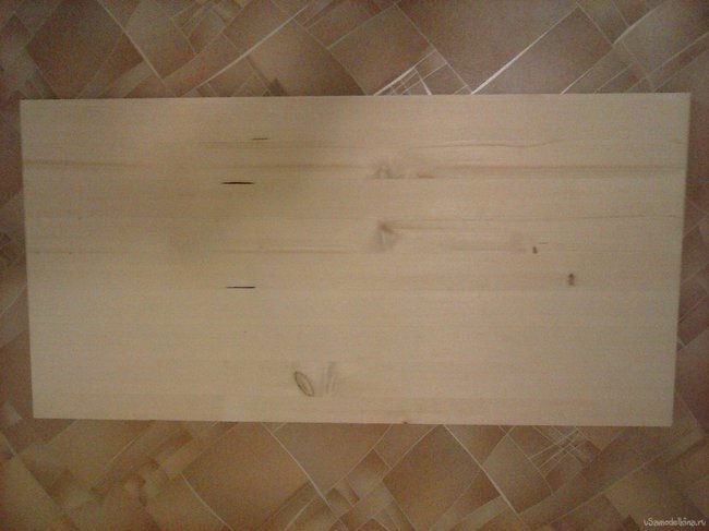 Отрезаем с помощью ножовки брусок длиной 80 см (по длине стола), и два деревянных бруска длиной 30 см.